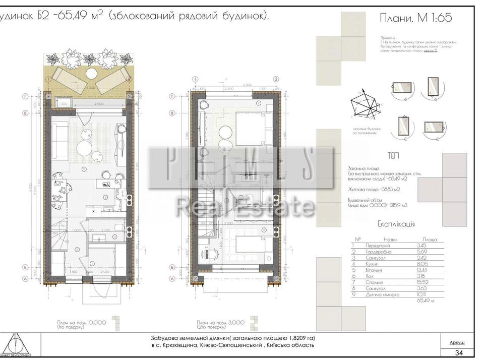 Площа: 66/39/8 м2, 2 поверхи, 3 кімнати + паркомісце