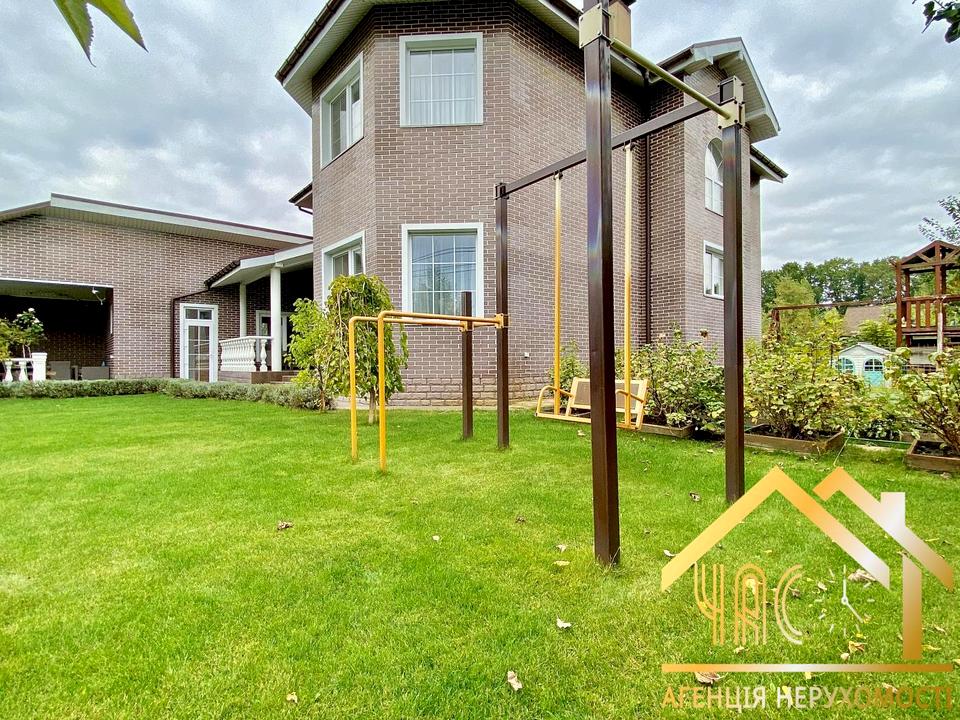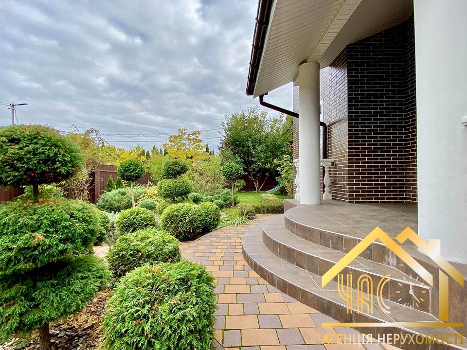 Пропонується до продажу просторий двоповерховий будинок площею 220 м², розташований на доглянутій ділянці 10 соток із ландшафтним дизайном.