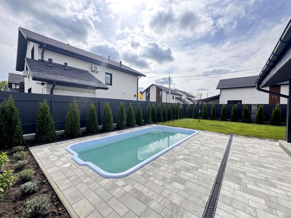 Продається новий, 1-поверховий будинок з ремонтом та меблями та власним бассейном , в Крюківщина,Гатному, в новому котеджному містечку!