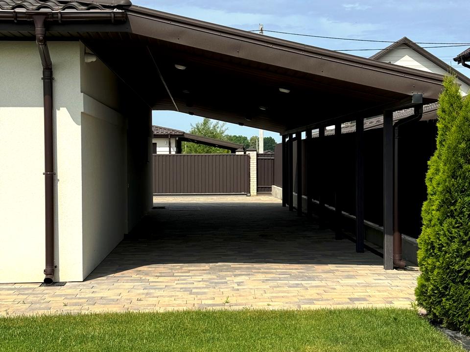 На ділянці є автонавіс на 2 автівки та майданчик ще на 2.