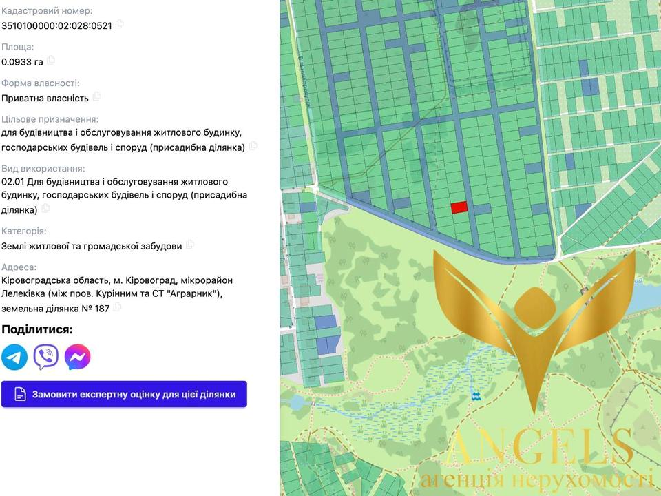 Кіровоградська область, м. Кіровоград, мікрорайон Лелеківка (між пров. Курінним та СТ "Аграрник"), земельна ділянка Nº187