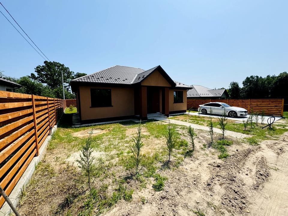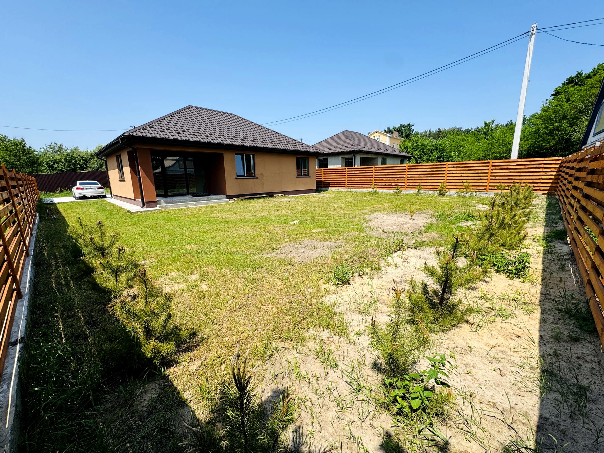 Будинок, 1 поверх, 2 кімнати. Матеріал стін - газоблок, фундамент будинку - залізобетон. Під'їзд до будинку - грунт. Площа ділянки 9 соток. Висота стелі 3 метра. Вид з вікон у двір. Планування кімнат Роздільне. Газ на вулиці. Холодна вода - свердловина, гарячої води немає. Опалення котел електричний. У будинку 2 роздільних санвузла. Сантехніка нова. Проведені. Вхідні двері броньовані. Немає покриття підлоги. Тип кухні - кухня-студія. Вікна металопластикові, нові. Покриття даху - металочерепиця. Є огорожа. Немає підвалу. Будинок побудований в 2023 році. Своя каналізація. У будинка 1 власник. Загальний стан будинку - Від будівельників (з обробкою). Можливість прописки. Поруч є школа, дитсадок, зупинки, розважальні заклади, супермаркет, річка / озеро, ліс. Будинок приватизований. Торг доречний, Вільна. Сантехніка нова. Зовнішнє утеплення стін. Власник погоджується продати по програмі єОселя. Працює без світла - інтернет. Без комісії