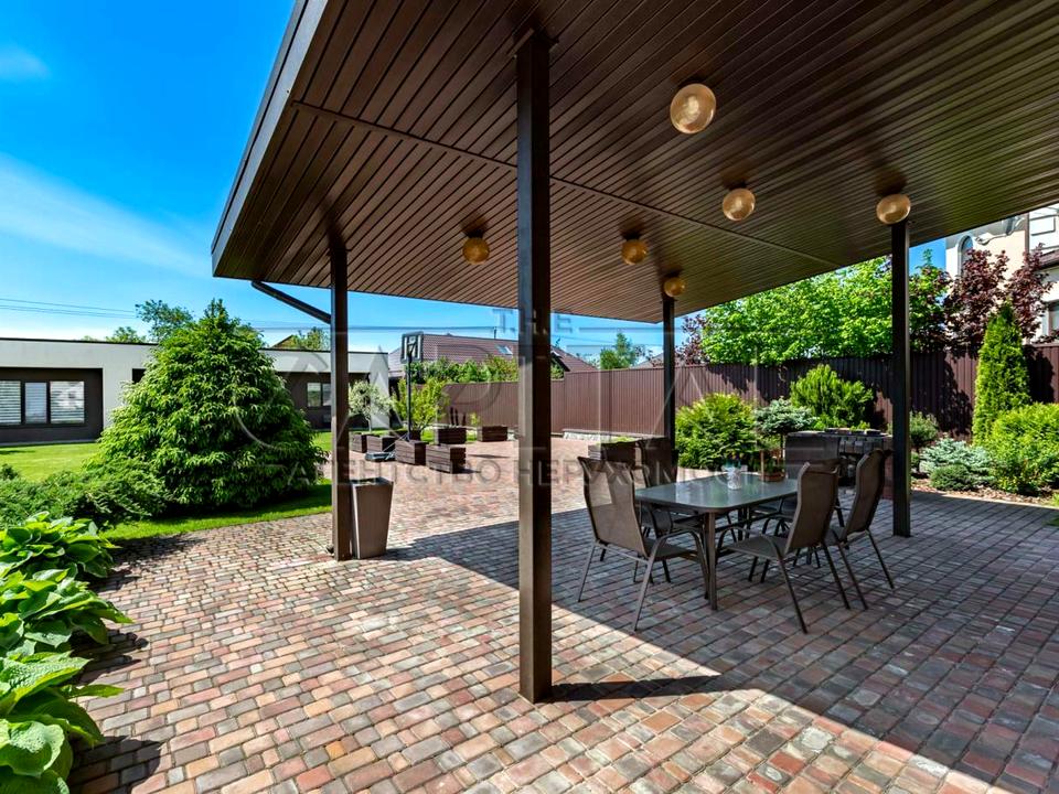 Ділянка 14 соток, газ, світло 20кВт. На ділянці відеоспостереження, газон, рокарій, автополив 7 зон. Тераса 40 кв.м. вигрібна яма з переливом 5 5 3 3=16 кубів.