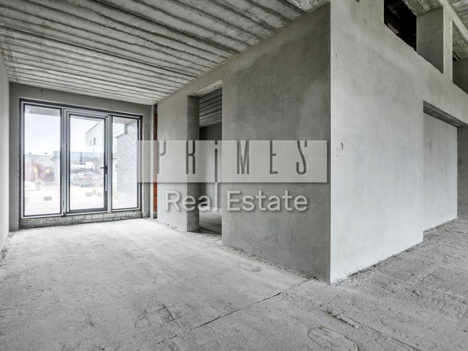 Планування: прихожа, гардеробна вхідна, санвузол при вході, гараж на 2 авто 50 м2, котельня, підсобне приміщення, кухня гостина з іншим світлом 61 м2, вихід на велику терасу 40 м2, кухона комора вихід 7 м2 на двір з навісом 8 м2 кімната планувалося зробити тренажерний зал 28 м2, сан узел вуличний.