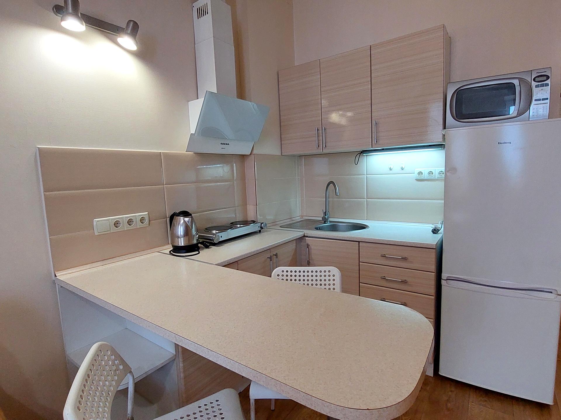 Квартира укомплектована необходимой мебелью и техникой.