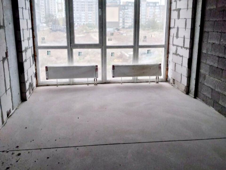 Фінальна стяжка підлоги, встановлено радіатори, якісні броньвані вхідні двері, заведено комунікації та лічильники.