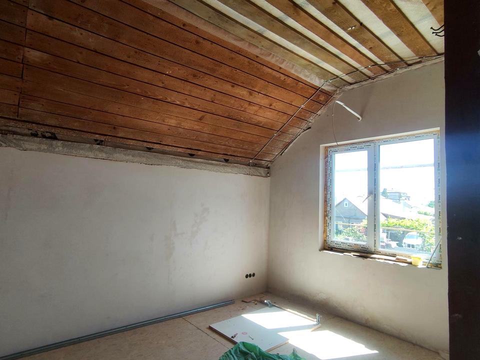 Мансардный этаж : две спальные комнаты и кабинет, ванная с уборной и выводом под финскую сауну.Дополнительное свободное пространство на всю площадь этажа с выдвижной лестнице