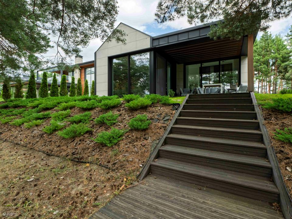 Велика Кухня-вітальня, 3 спальні, простора гардеробна кімната, 2 санвузла, велика тераса з видом на реку та величезні сосни! Велики панорамні вікна, вся побутова техніка від провідних виробників, японська сантехника Toto, сучасна система опалення та канальне кондиціонування з припливом свіжого повітря, багаторівнева система фільтрації та пом’якшення води.