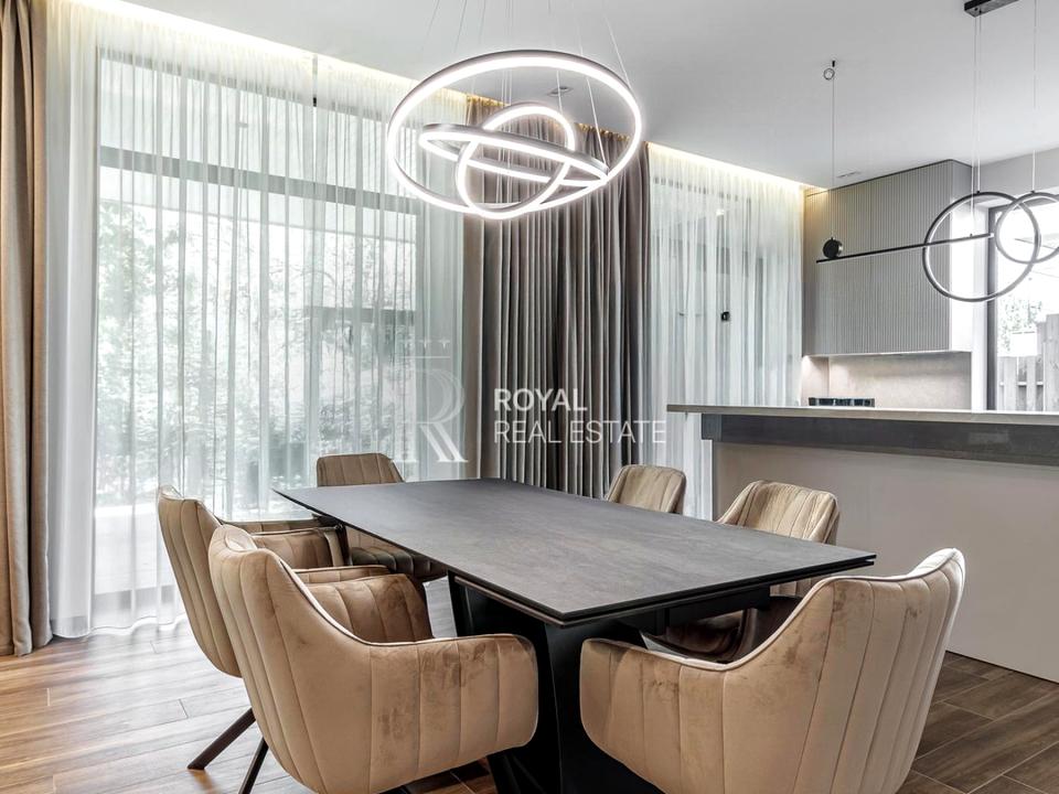 • Сучасний дизайн та функціональність: велика кухня-вітальня з панорамними вікнами, що забезпечують природне світло та чудовий вигляд на двір.