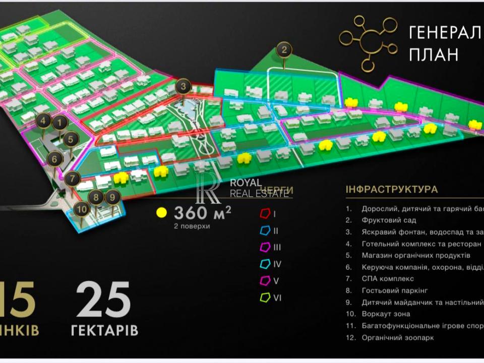 На 25 гектарах розмістилася закрита територія, де приватність поєднується з безмежною свободою. Живі паркани, широкі дороги, зелений ландшафт і віковий ліс — тут відчувається гармонія.