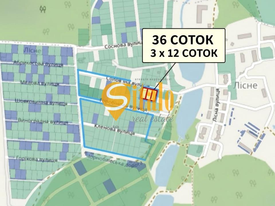 Продається ділянка 12 соток у мальовничому селі Лісне. Ідеальне місце для будівництва приватного будинку або вигідної інвестиції. Є можливість викупити додатково дві суміжні ділянки, об’єднавши їх у великий масив площею 36 соток.