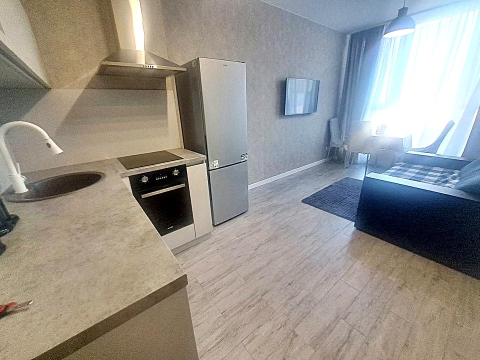 В квартирі 1 кімната, Тип будинку - Спец. проект. Немає газу, кухонна плита електрична. Немає балкона. У квартирі є Телевізор, Кондиціонер, Пральна машина, Ванна, Холодильник, Мікрохвильовка, Посудомийна машина, Посуд. Будинок побудований в 2025 році. Загальний стан квартири - З ремонтом. Гаряча вода - електричний бойлер. Кількість санвузлів: 1. Інтернет оптоволоконний. Працює без світла - вода, опалення, ліфт. Тип кухні - кухня-студія. Кількість спален: 1. Комісія за послуги 50 %