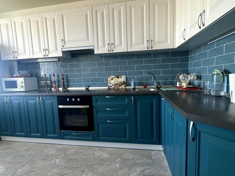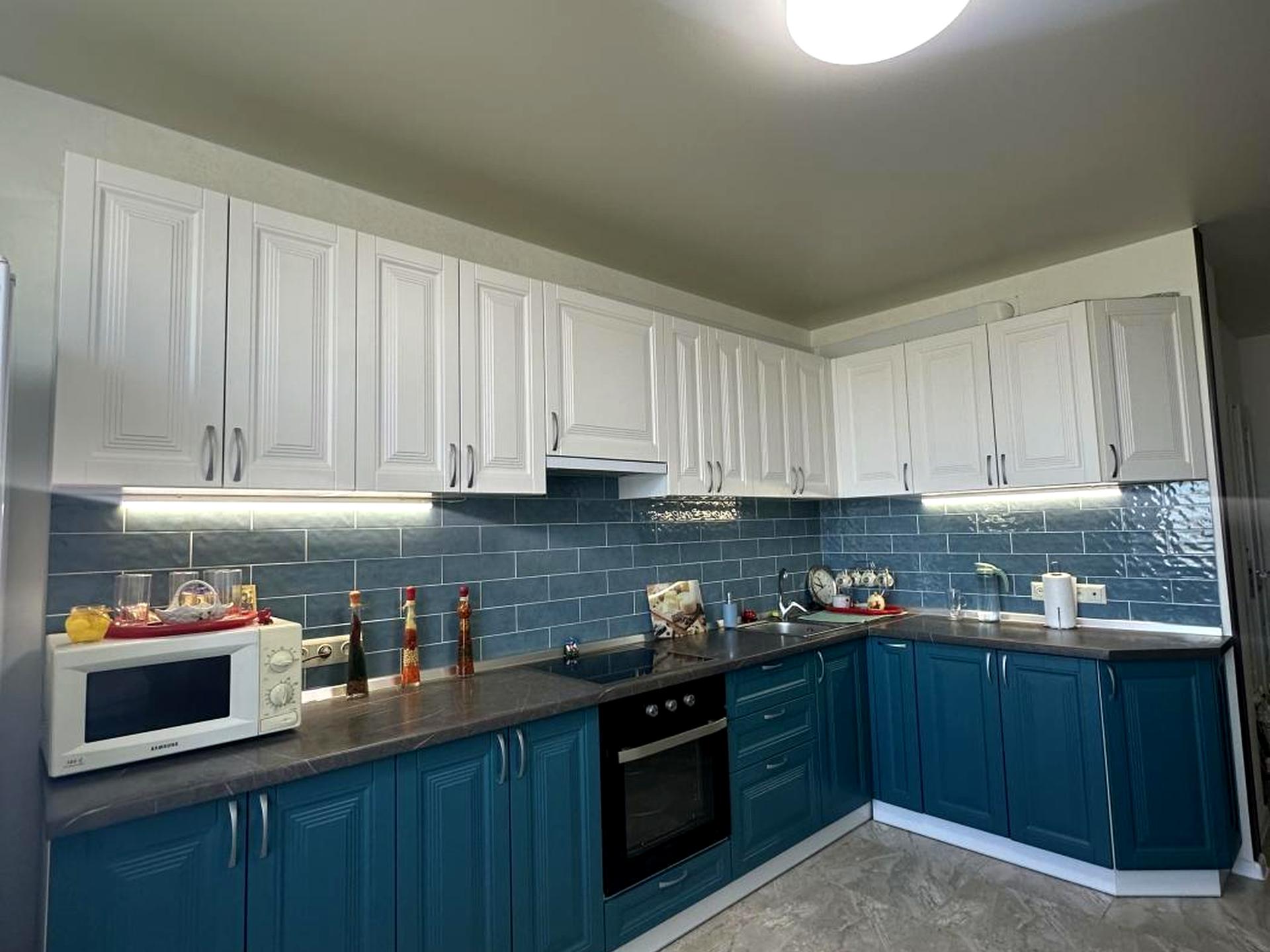 Просторная кухня с мебелью и техникой