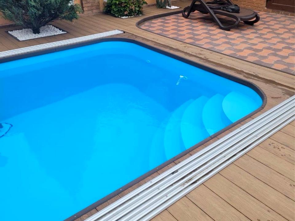 На участке — частный бассейн и ухоженная территория с красивым ландшафтным дизайном, где приятно отдыхать и проводить время.