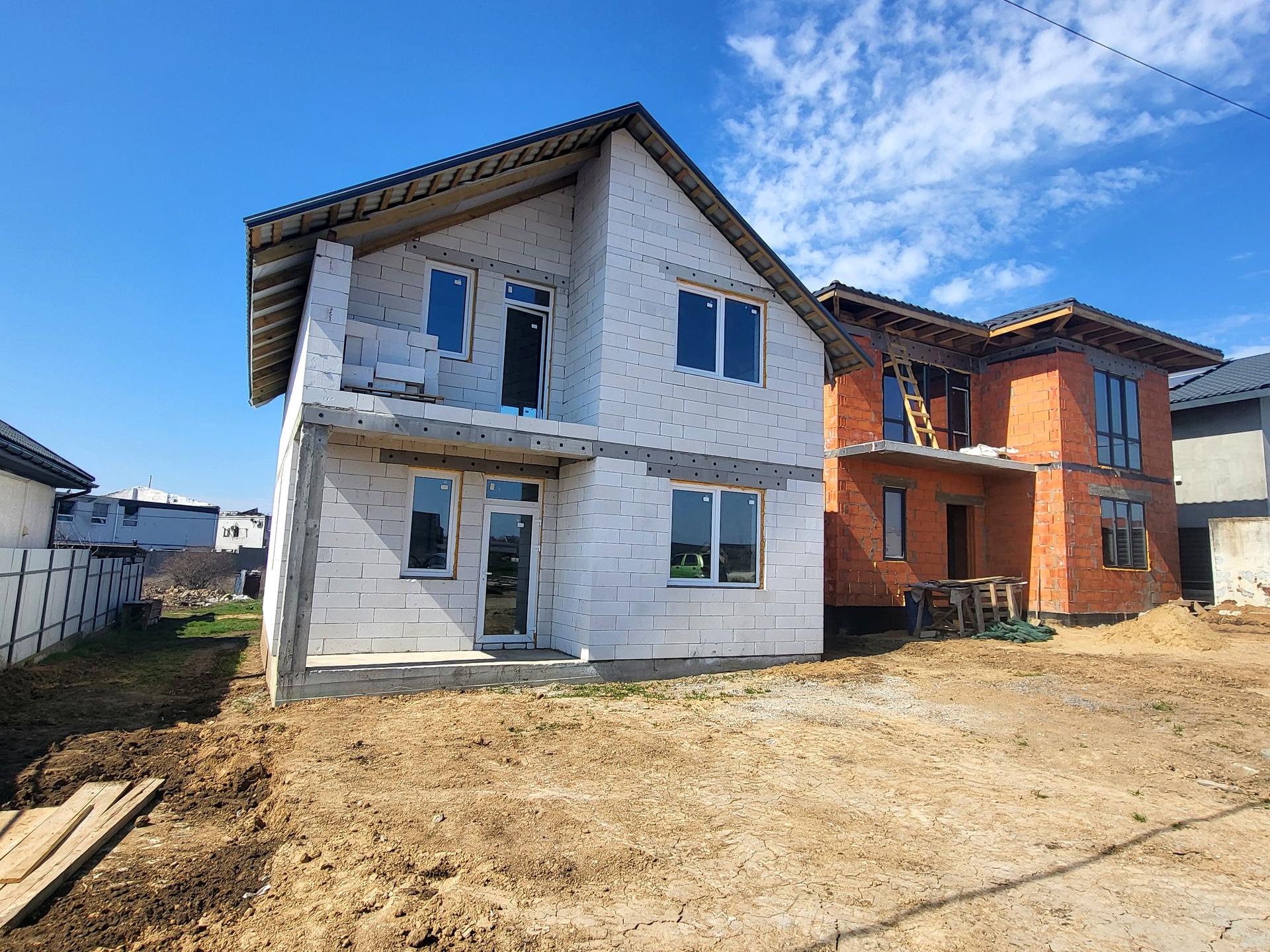 Фундамент дома - ленточный. Стены из газобетонного блока (ширина 40 см) с армировкой. Межэтажное перекрытие из железобетонных плит. Крыша из качественной металлочерепицы с гарантией 10 лет.