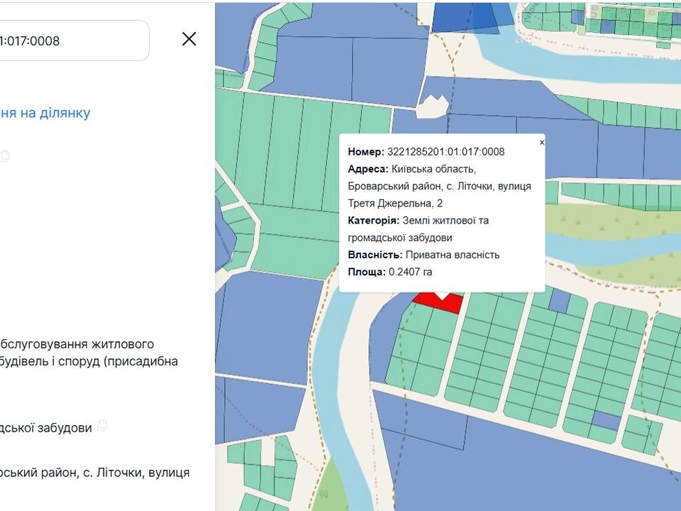 Кадастровий номер 3221285201:01:017:****  верифіковано через реєстр