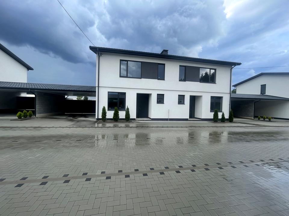 На першому поверсі: простора прихожа, кабінет, санвузол, котельня та простора кухня-гостинна. На другому: три окремі кімнати, санвузол та прачечна. Великі вікна з сучасними склопакетами та індивідуальним склом з зеркальним ефектом (ламінація). Встановлені широкі сходи на викрашеному металевому косоурі з дерев’яними сучасними сходами.