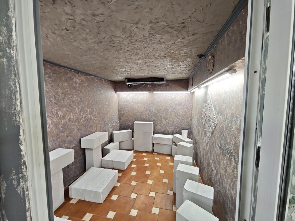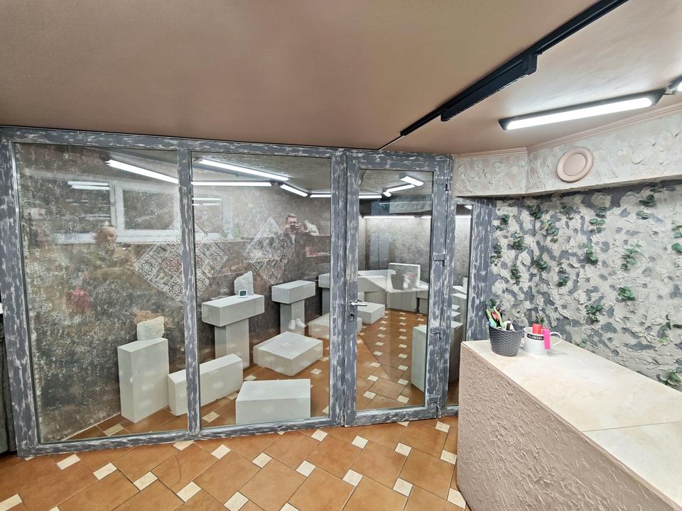 - Складається з двох залів, комірки, та санвузла