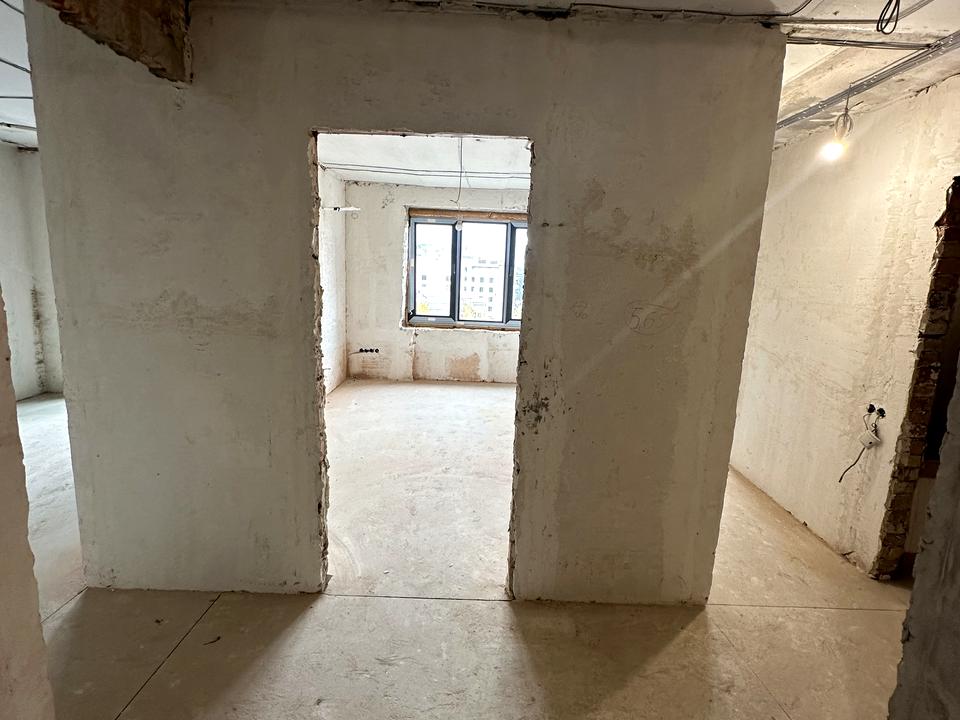 залита чистова стяжка, стіни вирівняні, замінена електрика, сантехніка й каналізація.