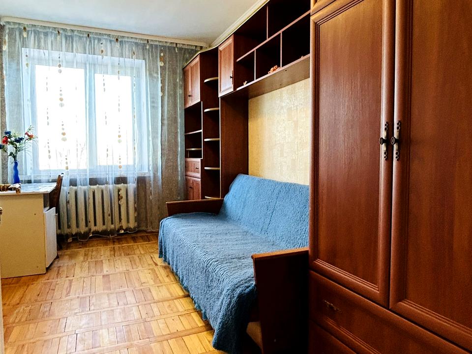 кухня 6 кв. м., коридор 6.6 кв. м., кімнати 10.2/17.8/13.8 кв. м., роздільний санвузол 2.1/1 кв. м. (новий бойлер для підігріву води 50л.). Паркет, плитка – підлога.