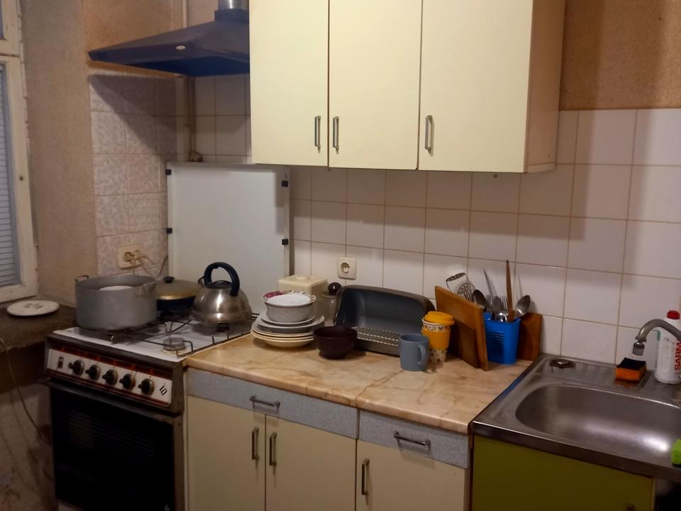 2 кімнати в 2-кімнатній квартирі, Комунальна квартира. Технологія будівництва - Цегляна, Тип будинку - Сталінка. Вид з вікон у двір, на проїжджу частину. Кімната Ізольована, Квартира перепланована. Є газ, кухонна плита газова. Гаряча вода - централізованна. Опалення центральне. Роздільний санвузол, туалет/ванна. Сантехніка потребує ремонту. Вхідні двері дерев'яні. Покриття підлоги - ламінат. Балкона немає. Лоджії немає. Стеля натяжна. Вікна дерев'яні, потребують ремонту. Міжкімнатні двері дерев'яні, потребують ремонту. В кімнаті є Пральна машина, Холодильник, Лічильники. Будинок побудований в 1970 році. Загальний стан кімнати - Без ремонту. Поруч є супермаркет, розважальні заклади, зупинки, дитсадок, школа, парк. Сантехніка потребує ремонту. Комісія за послуги 4 %