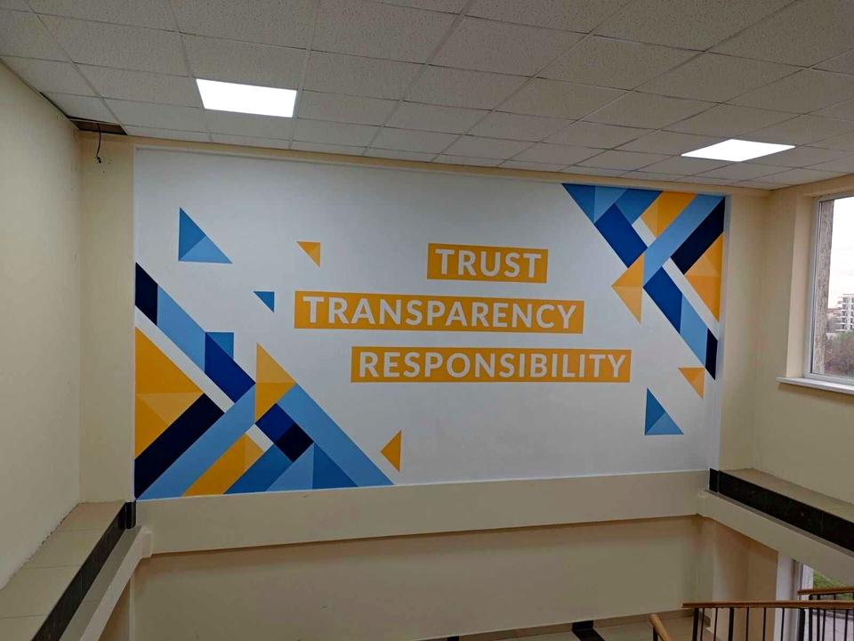 Оснащення: слаботочна мережа на 500 робочих місць, серверна, кухня, санвузли, душові кімнати