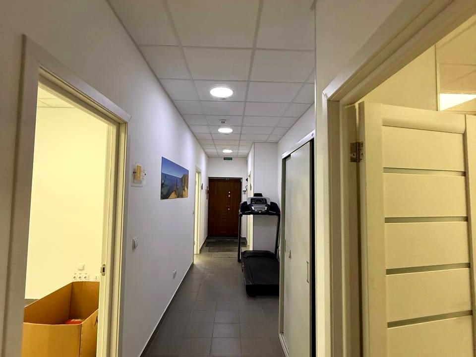 Планування: просторий коридор, 11 кабінетів, 2 санвузли. Всі перегородки несучі є можливість зробити open space.