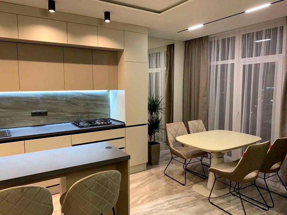 Пропонується в оренду простора квартира площею 65 м² у новобудові, розташована на 8-му поверсі 12-поверхового будинку.
