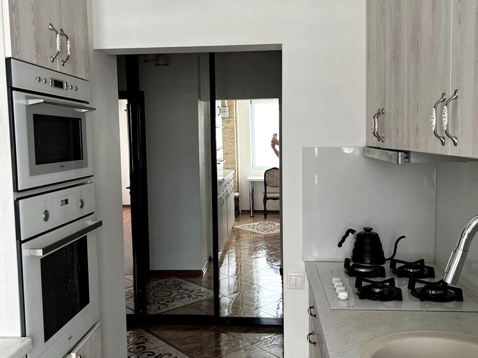Кухня: газова плита, духовка, мікрохвильовка, холодильник з морозильною камерою, посудомийна машина, система очищення води (осмос).