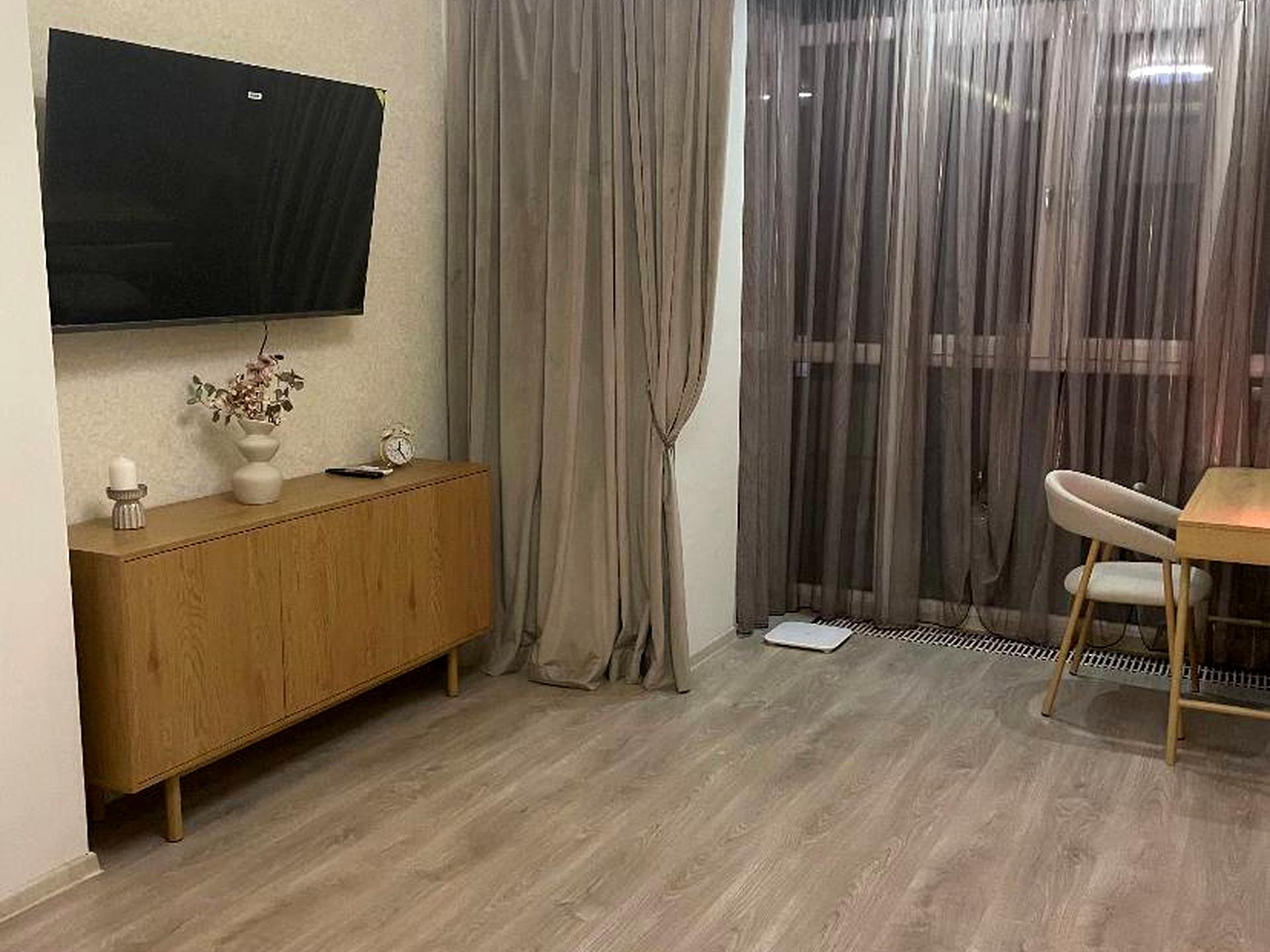 • Санвузол: суміжнийЗдається в оренду простора 1-кімнатна квартира з авторським ремонтом у новобудові ЖК "Ренуар". Квартира повністю укомплектована якісною побутовою технікою: посудомийна машина та духова шафа Miele, варильна панель, мікрохвильова піч, холодильник, електрочайник, пральна машина, пилосос, кондиціонер, телевізор, швидкісний інтернет (оптоволокно) та Wi-Fi. У зоні відпочинку — розкладний диван розміром 2×2,2 м та окрема гардеробна кімната. Двоспальне ліжко з ортопедичним матрацом буде доставлено після 25 жовтня.