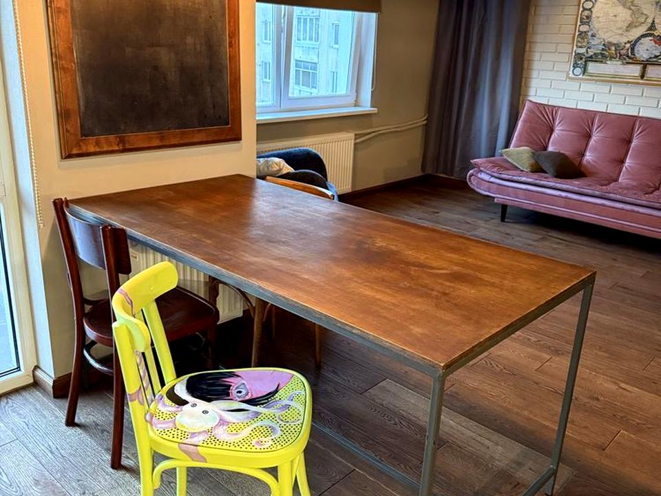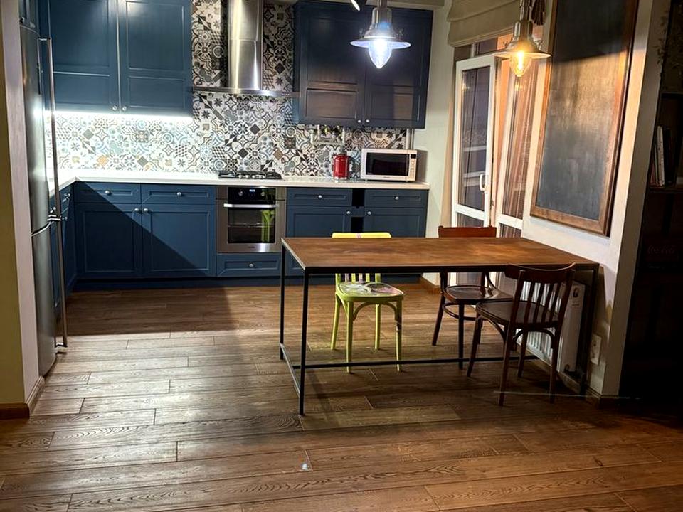 Квартира виконана у сучасному стилі LOFT, розташована на 8 поверсі 10-поверхового будинку. Загальна площа — 73 м², планування — студія з двома окремими санвузлами. Перша здача після власників.