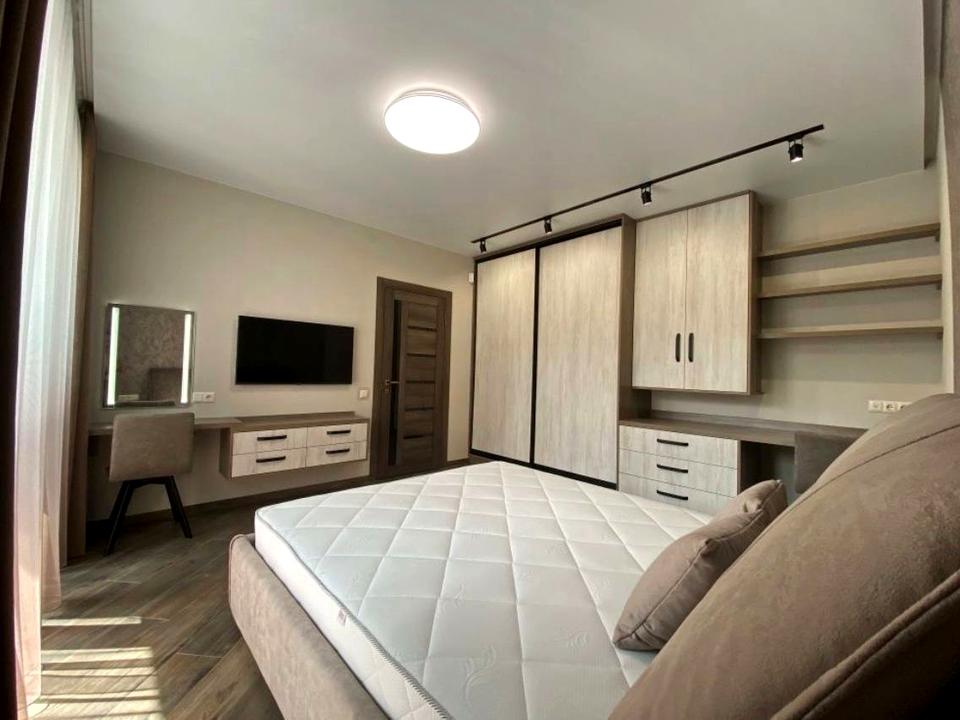 Квартира повністю укомплектована меблями та сучасною побутовою технікою. Є підігрів підлоги з п’ятьма контурами, кондиціонер із функцією тепло/холод, відеодомофон, сигналізація з датчиками руху, два телевізори, посудомийна машина, духовка, мікрохвильова піч, пральна машина, варильна панель, холодильник, фен, праска, швидкісний інтернет і Wi-Fi.