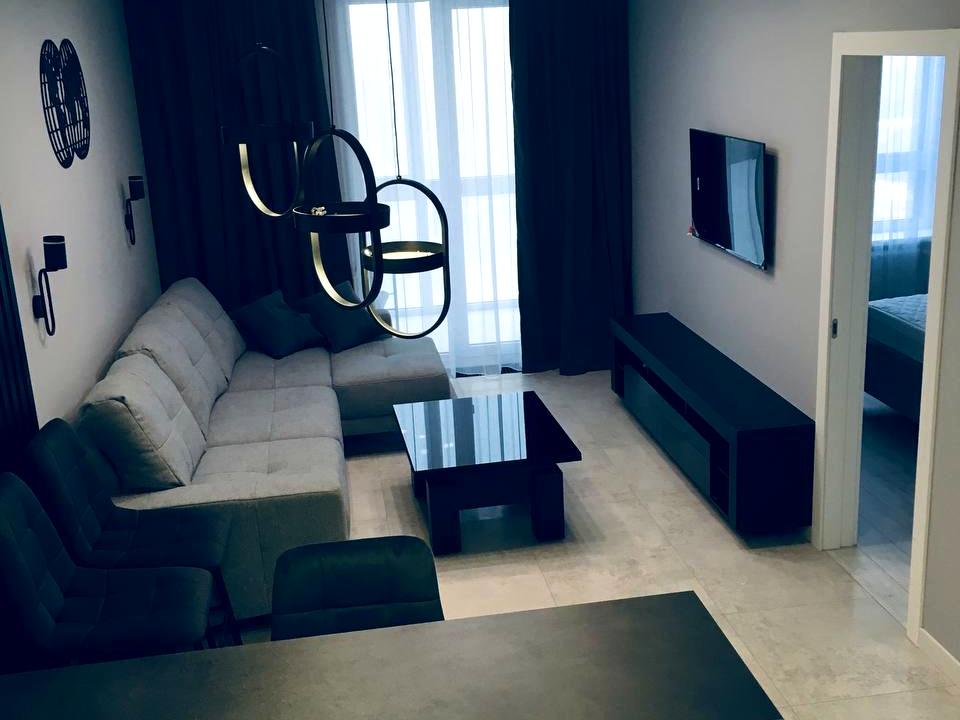 Кухня-студія + спальня з гардеробом. Всі необхідні меблі(розкладний диван у студії, двоспальне ліжко з ортопедичним матрасом у спальні]. Побутова техніка: прально-сушильна
