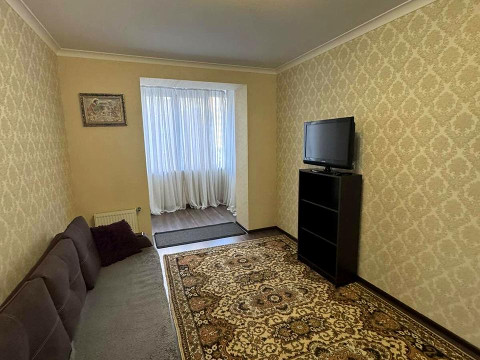В квартирі є холодильник, варочна поверхня, електрочайник, пральна машина, посуд. В кімнаті велика шафа і диван який розкладається як двоспальне ліжко.