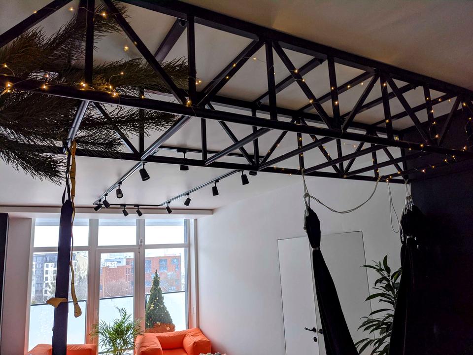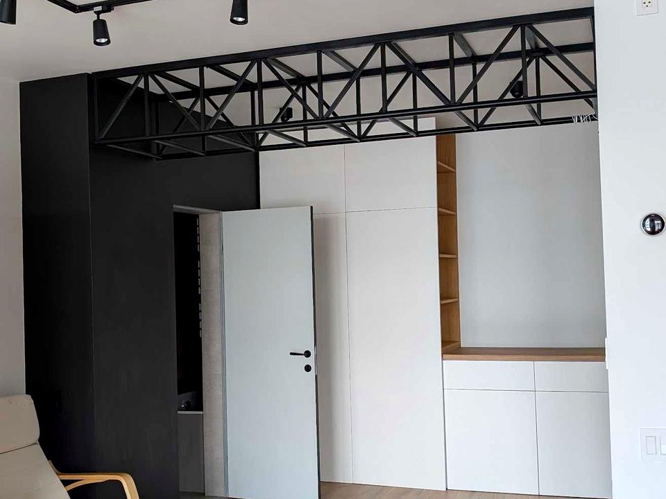 Планування включає спальню та просторий студійний простір площею близько 38 м з висотою стель 2.8 м. Окрема перевага – велика тераса понад 12 м з доступом з кожної кімнати та величезна 11 м ванна кімната з окремим безпіддонним душем, ванною і масажною лавкою. Квартира повністю укомплектована якісними меблями на замовлення, побутовою технікою преміум-класу та системою «розумний дім» з голосовим керуванням, датчиками руху та розумним замком з автоматичним відчиненням.