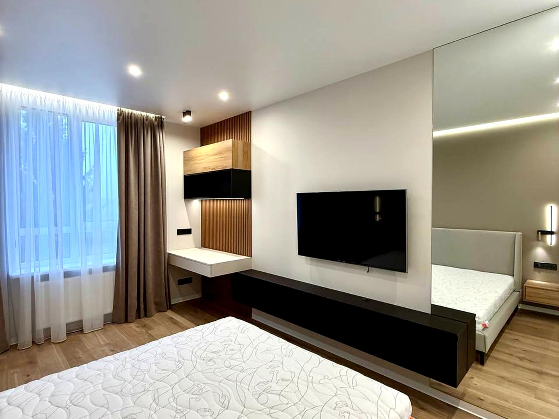 В квартирі 1 кімната. Планування кімнат Роздільне. В квартирі є Телевізор, Кабельне ТБ, Праска, Шафа, Ліжко, Підігрів підлоги, Кондиціонер, Пральна машина, Сушильна машина, Холодильник, Мікрохвильовка, Посудомийна машина, Посуд, Лічильники. Будинок побудований в 2025 році. Загальний стан квартири - З ремонтом. Працює без світла - вода, газ, опалення, інтернет, ліфт, резервне живлення квартири (акумулятори). Комісія за послуги 100 %