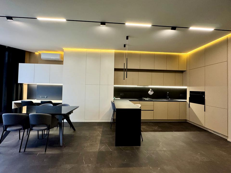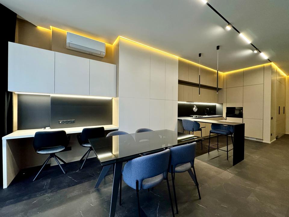 • Меблі та техніка: комбінована варильна поверхня, духова шафа, холодильник, посудомийна машина, кондиціонер, стіл та стільці, диван, телевізор, робоче місце, двоспальне ліжко.