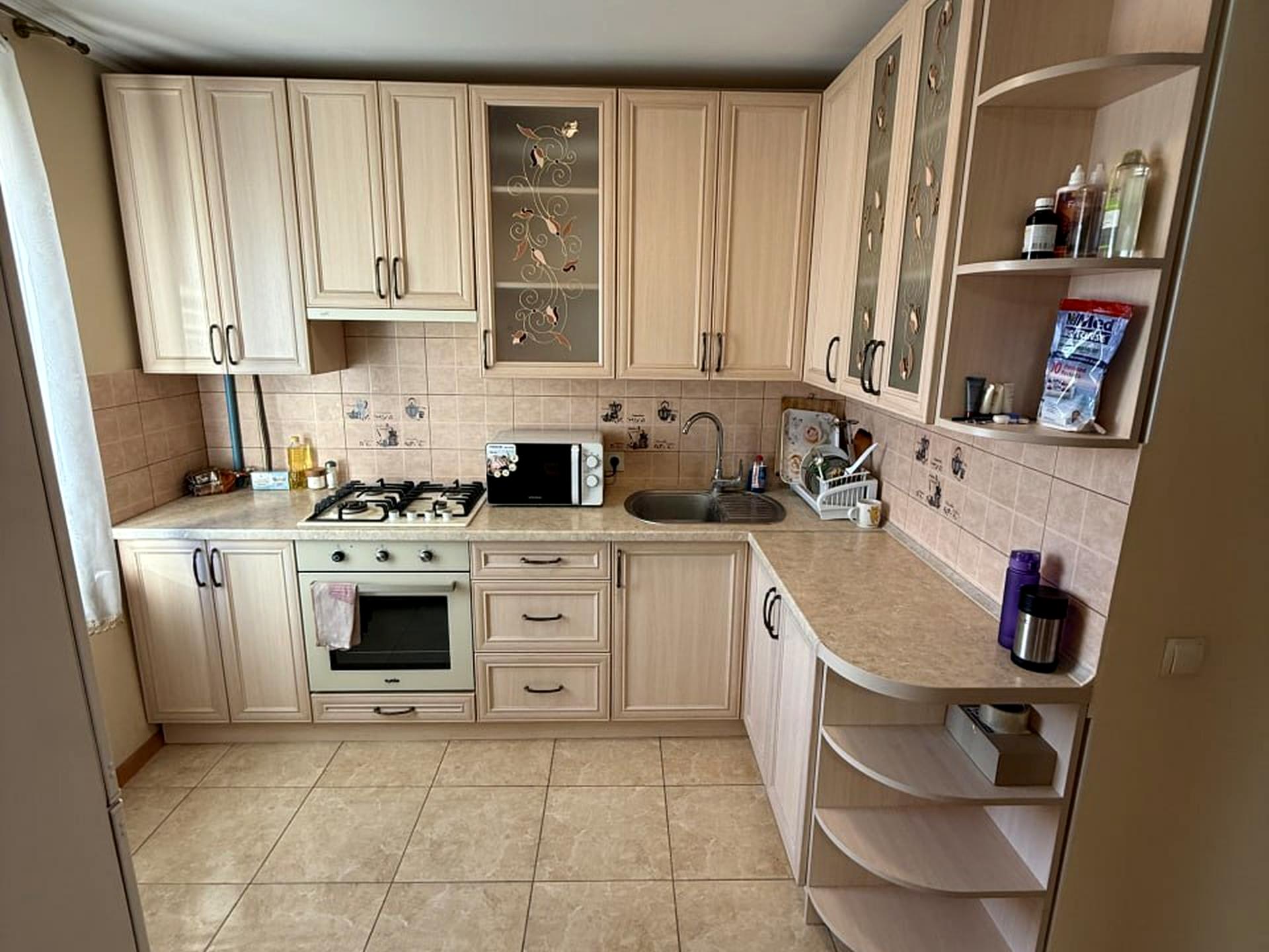 У кухні у наявності уся необхідна побутова техніка: холодильник,мікрохвильова піч, варильна поверхня та духова шафа, пральна машина.
