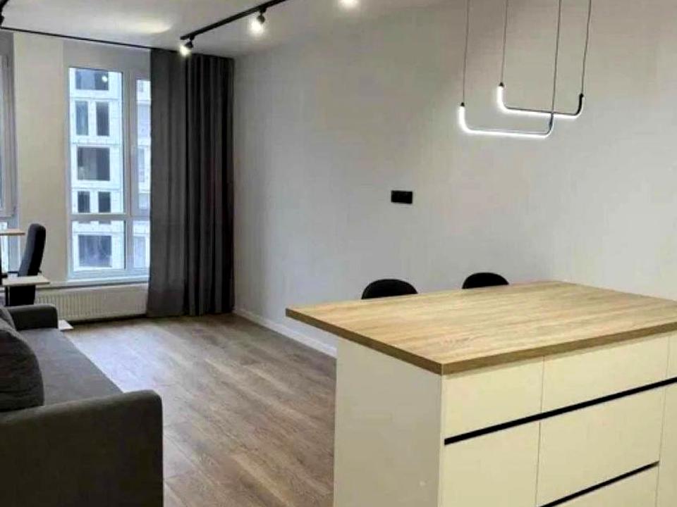 43 м², кухня-студія 16 м², 8/9 поверх. Перша здача, авторський ремонт, тепла підлога (крім спальні), кондиціонер, посудомийка, нова техніка, гігабітний інтернет. Автономне газове опалення, електрика 24/7. Гарний вигляд на Високий Замок. Без тварин. 550 $/міс.