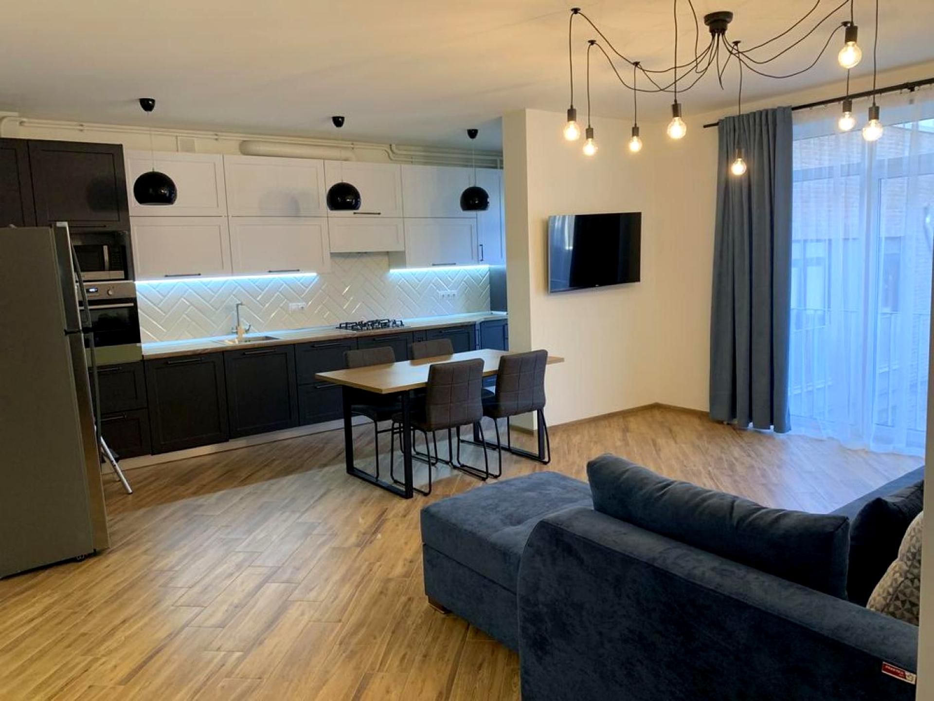 В квартирі 3 кімнати. В квартирі є Телевізор, Підігрів підлоги, Кондиціонер, Пральна машина, Холодильник, Мікрохвильовка, Посудомийна машина. Загальний стан квартири - З ремонтом. Комісія за послуги 100 %