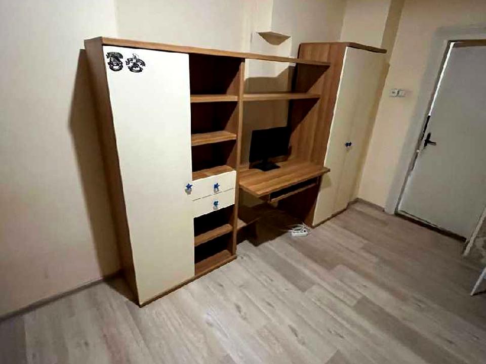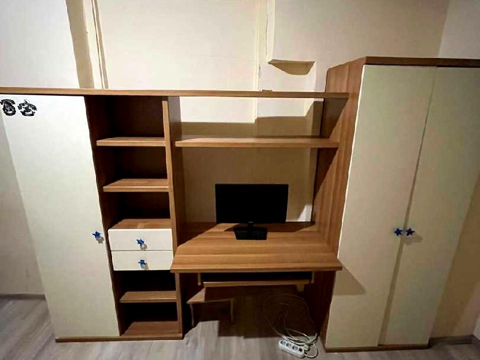 В спальні новий розкладний диван та, шафа та робоче місце