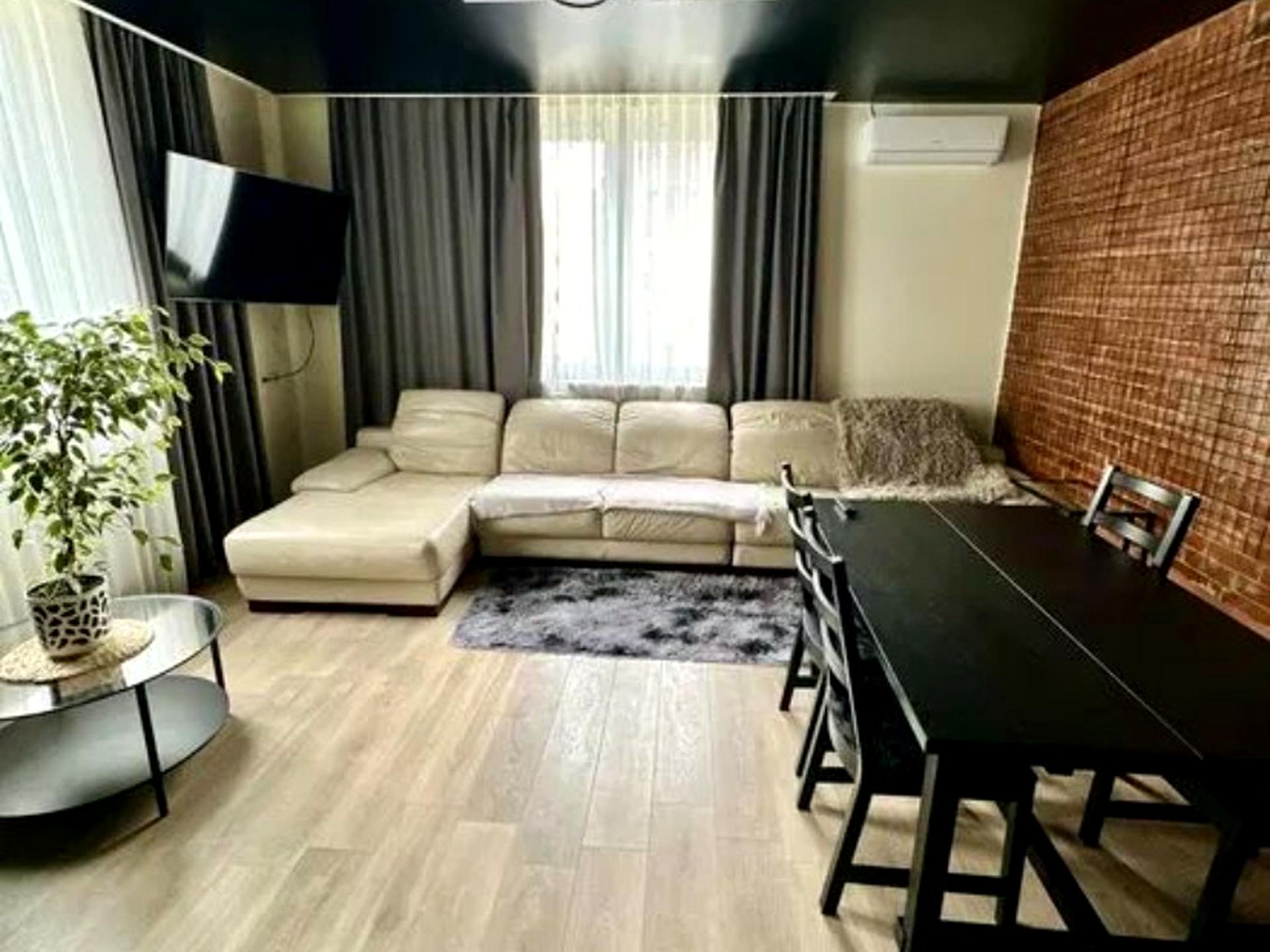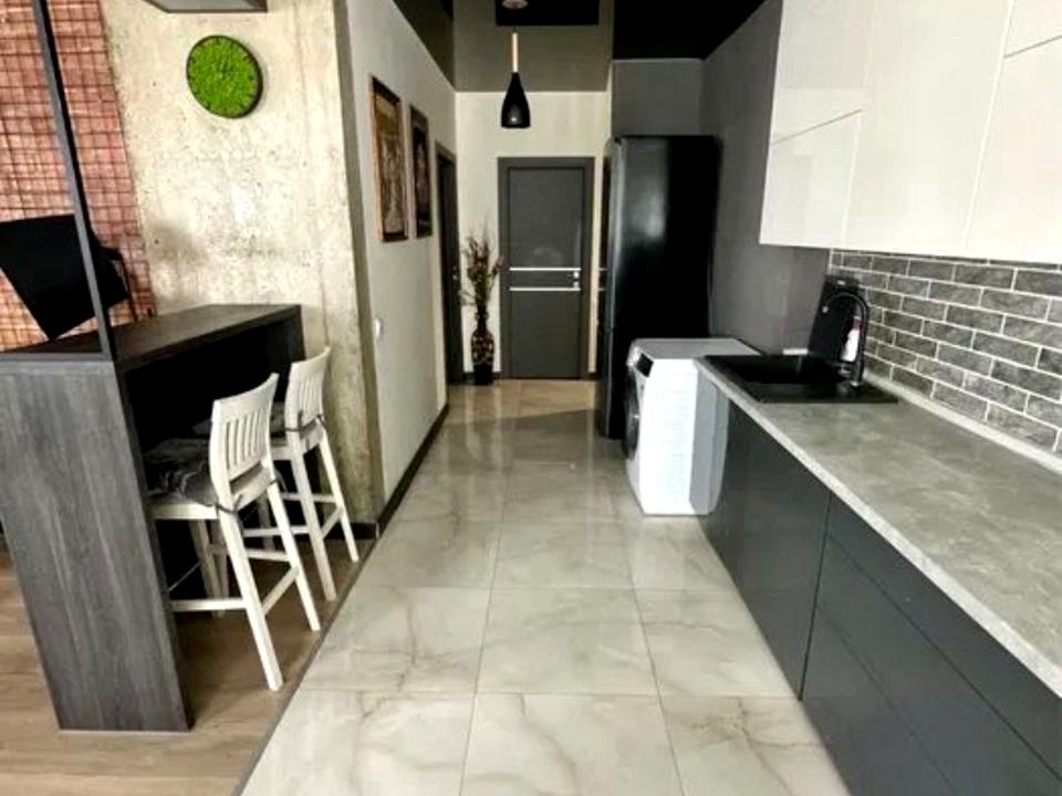 9 поверх у 15-типоверхівці. Кухня студія, ізольована спальня, лоджія з диванчиком, два санвузли. Новобудова, євроремонт у стилі лофт. Сучасні меблі та побутова техніка (холодильник, посудомийна машина, індукційна плита, кондиціонер, телевізор, пральна машина тощо). Підігрів підлоги у кухні та санвузлі. Будинок має свої паркомісця і зачинені дитячий і спортивний майданчики. Цілодобова охорона. Поруч парк, зупинка громадського транспорту, продуктові магазини, церква. Дозволяється проживання з маленькими домашніми улюбленцями.