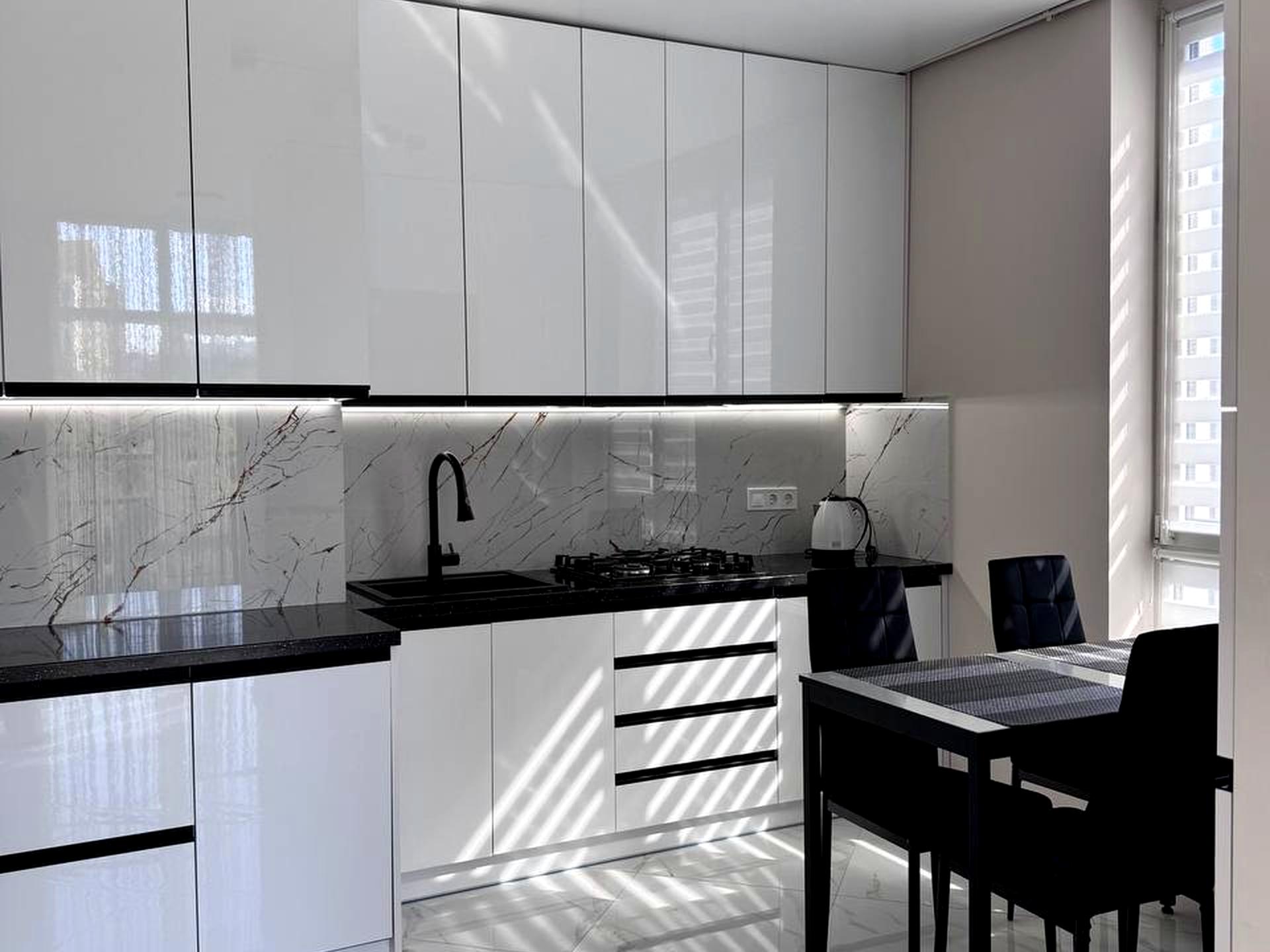 В квартирі є всі необхідні меблі та техніка для комфортного проживання: посудомийна машина, газова плита, кондиціонер, телевізор,пилосос