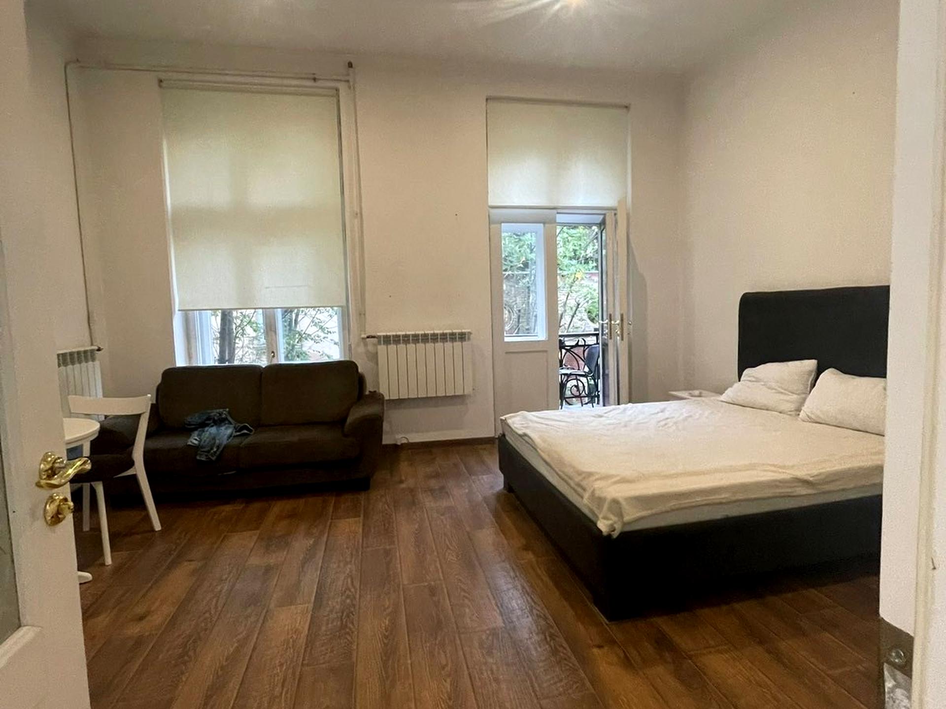 З гарним балконом в центрі міста. Тиха, бічна, зелена вулиця. Є все що треба для комфортного життя . Двоспальне ліжко.