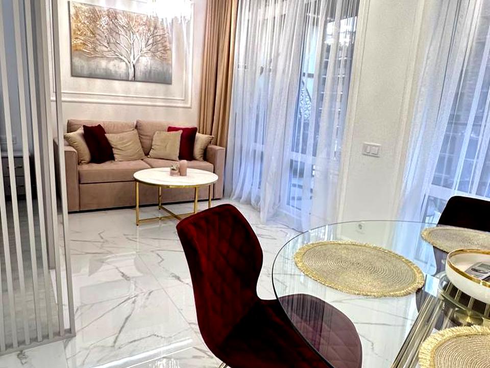 В квартирі 1 кімната. У квартирі є Телевізор, Кондиціонер, Пральна машина, Холодильник, Мікрохвильовка, Посудомийна машина, Посуд. Будинок побудований в 2016 році. Загальний стан квартири - З ремонтом. Працює без світла - вода, опалення, інтернет, ліфт. Комісія за послуги 100 %