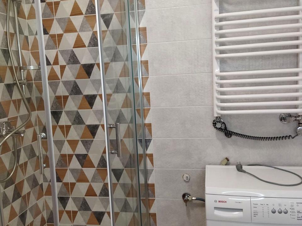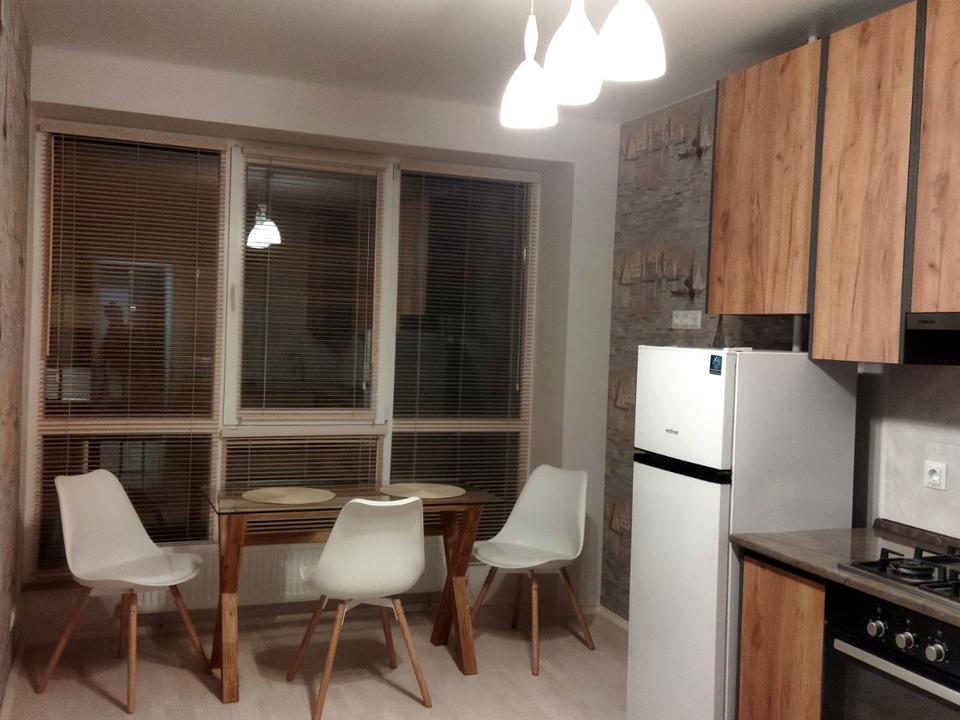 Оренда 1-кім. + кухня- студія, Франківський район, вул. Героїв Крут (Підстригача), ЖК Компаньой. 7/9-пов, площа 46 м². Індивідуальне газове опалення, євроремонт. Є 2-сп. ліжко і диван, душова кабіна, панорамні вікна, ліфт, меблі на кухні.