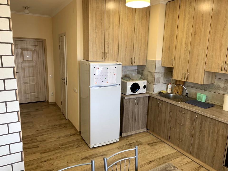 У квартирі є всі необхідні меблі та техніка: кондиціонер, великий 55-дюймовий LED телевізор, ліжко з ортопедичним матрацом, простора шафа-купе, невеликий робочий стіл та офісне крісло, комод. З техніки — пральна машина, мікрохвильова піч, електрочайник, холодильник, пилосос. Проведений інтернет.