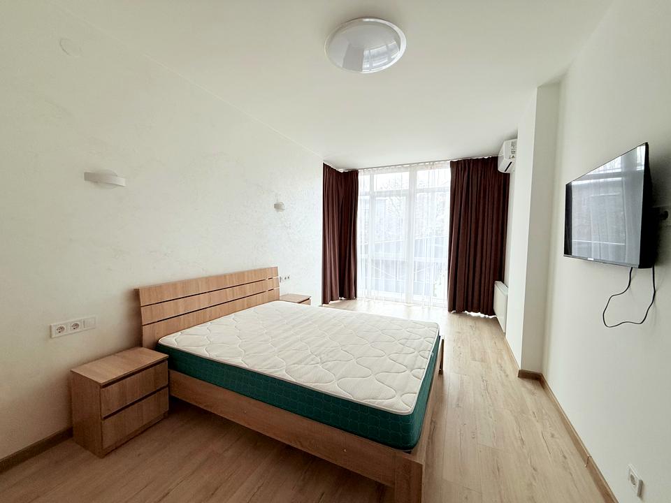 В квартирі 1 кімната. У квартирі є Телевізор, Праска, Підігрів підлоги, Кондиціонер, Пральна машина, Ванна, Холодильник, Мікрохвильовка, Посудомийна машина. Будинок побудований в 2022 році. Загальний стан квартири - З ремонтом. Працює без світла - вода, газ, інтернет. Комісія за послуги 500 $