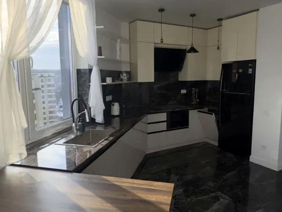 В квартирі 2 кімнати, Технологія будівництва - Утеплена панель, Тип будинку - Спец. проект. Кухонна плита електрична. Є балкон. У квартирі є Телевізор, Пральна машина, Сушильна машина, Душова кабіна, Холодильник, Посудомийна машина. Будинок побудований в 2021 році. Загальний стан квартири - З ремонтом. Кількість санвузлів: 2. Інтернет оптоволоконний. Працює без світла - вода, опалення, інтернет, ліфт. Тип кухні - кухня-студія. Кількість спален: 1. Комісія за послуги 100 %