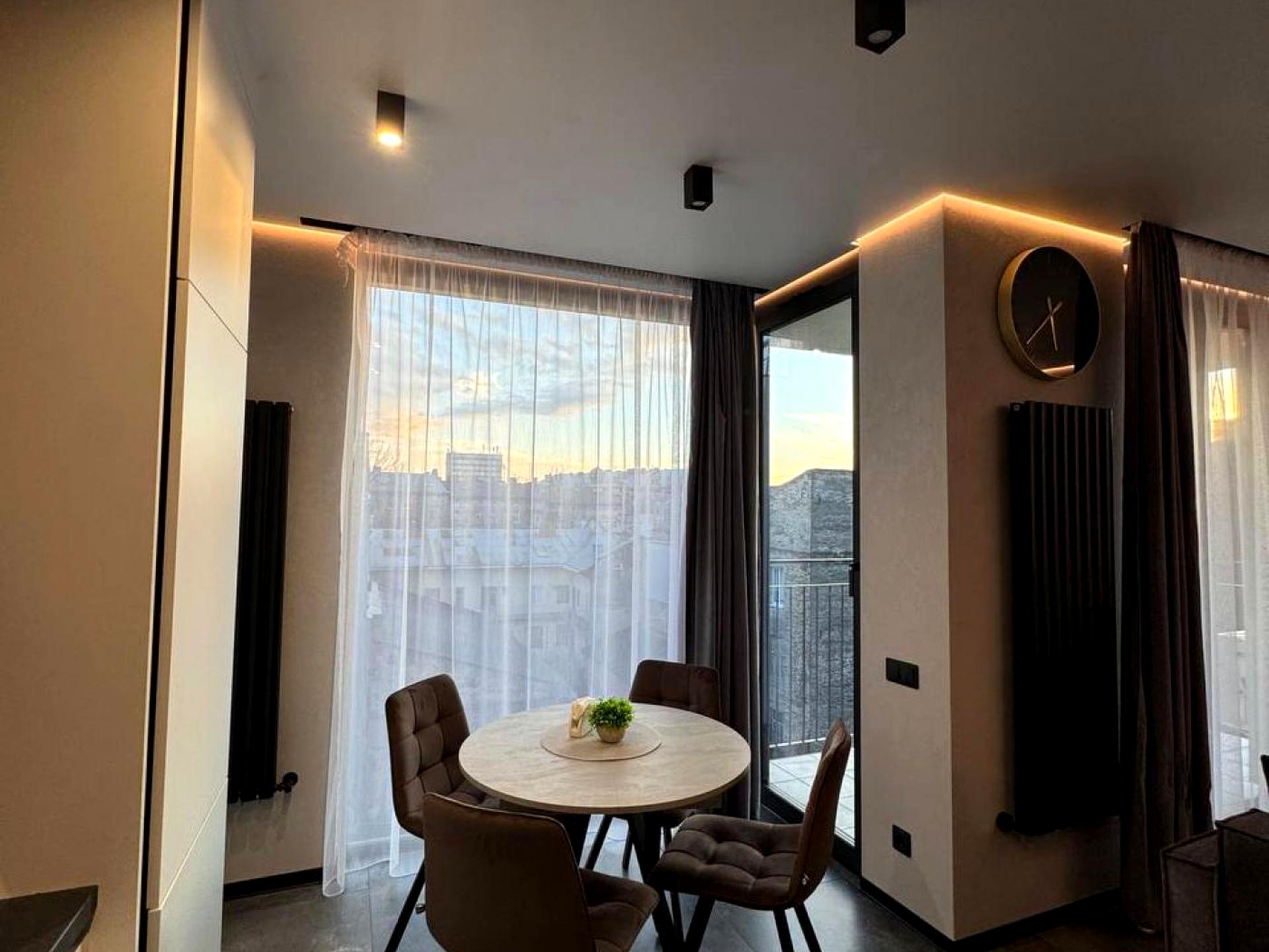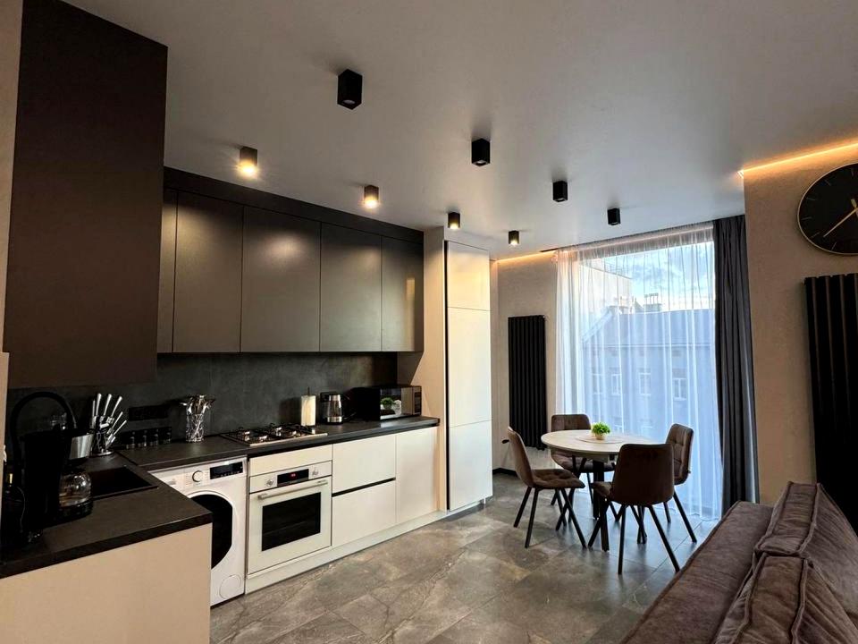 В квартирі 1 кімната, Тип будинку - Спец. проект. Є газ. У квартирі є Телевізор, Кондиціонер, Пральна машина, Душова кабіна, Холодильник, Мікрохвильовка, Посудомийна машина, Посуд. Будинок побудований в 2024 році. Загальний стан квартири - З ремонтом. Комісія за послуги 100 %